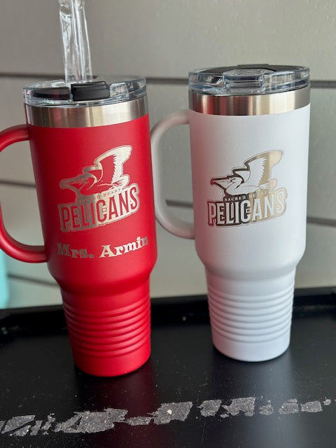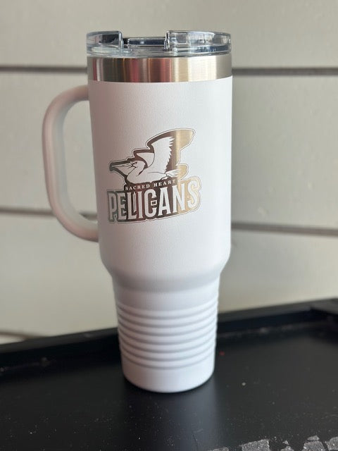 Stainless steel 40oz tumbler with lid and straw. You choose tumbler color and SHCS logo will be engraved onto the tumbler.